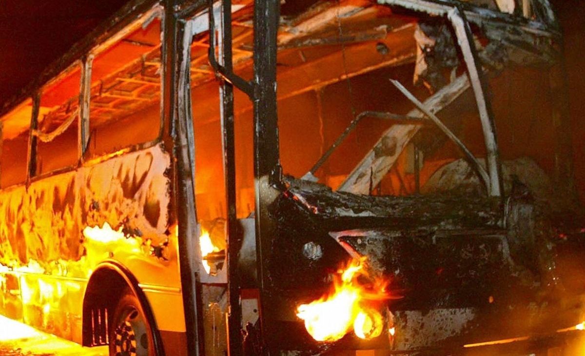 Las imágenes transmitidas por esa televisión pública mostraron el chasis del autobús completamente quemado.