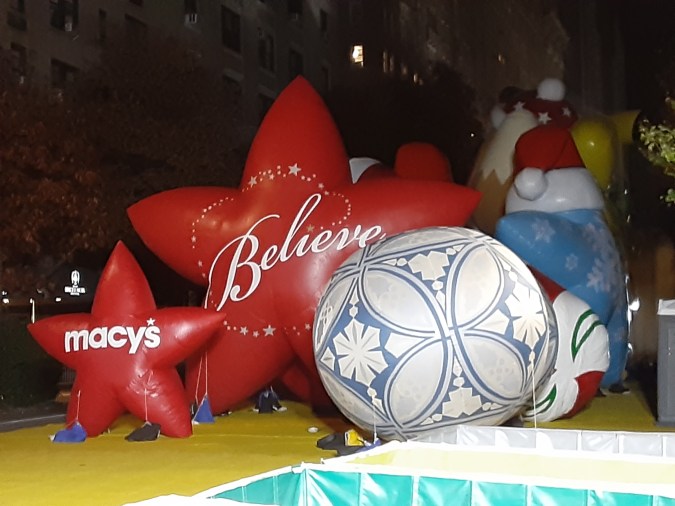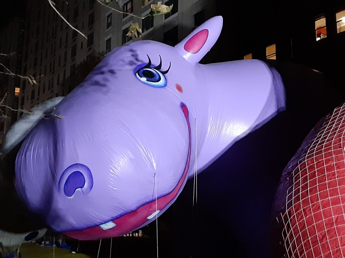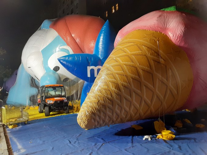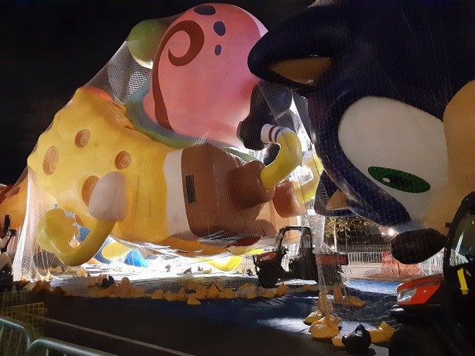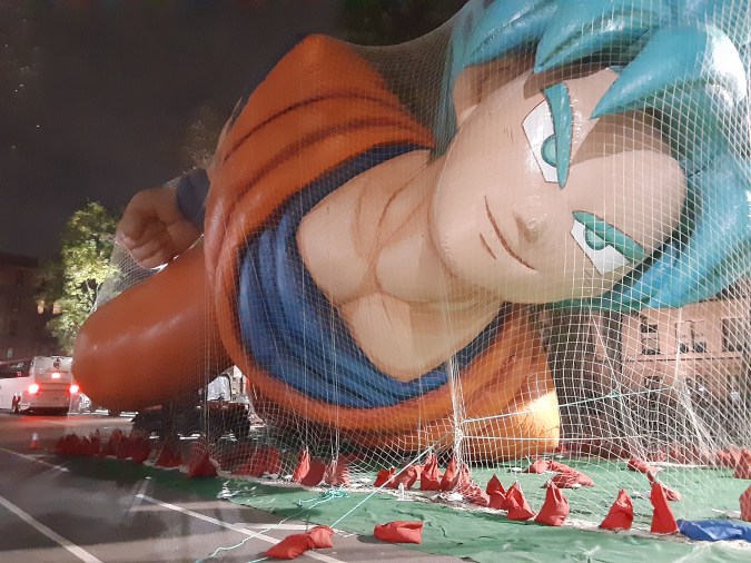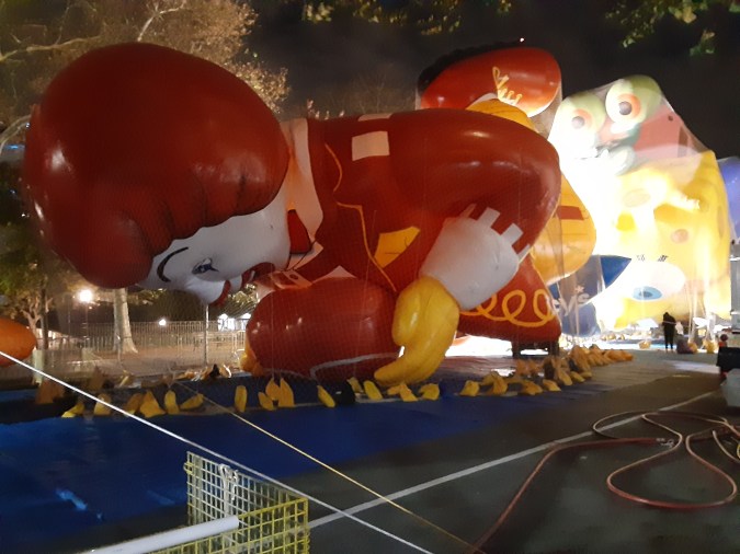 A pocas horas de que comience el famoso desfile Macy's del Día de Acción de Gracias, el inflado de los globos gigantes de helio anoche fue un espectáculo en sí mismo en el Upper West Side