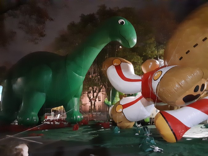A pocas horas de que comience el famoso desfile Macy’s del Día de Acción de Gracias, una tradición en las calles de Nueva York desde el año 1924, el inflado de los globos gigantes de helio es un espectáculo en sí mismo en las adyacencias del Museo de Historia Natural (AMNH), en el Upper West Side.