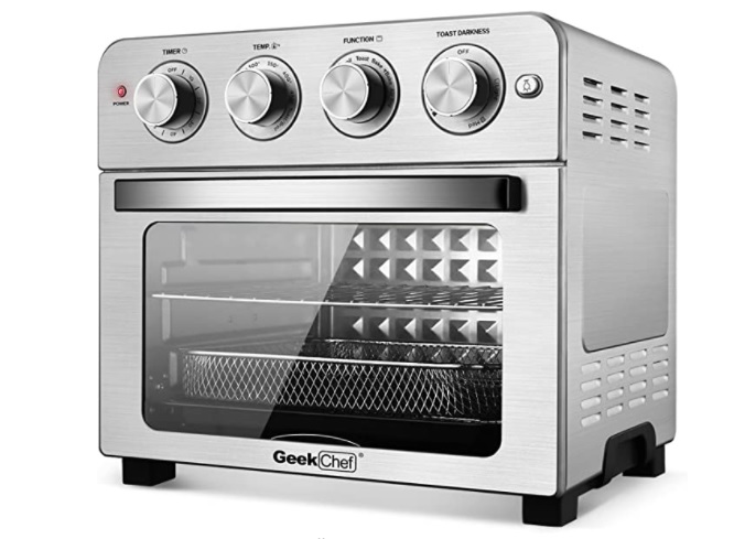 Entre los electrodomésticos se encuentra este horno tostador Geek Chef Air Fryer 24QT, de 1700 W, de acero inoxidable, donde puedes asar, hornear, recalentar, freír- Tiene un costo normal de $199.99 dólares, pero con el descuento lo puedes adquirir a $149.99 dólares, lo que representa un ahorro de 25%,