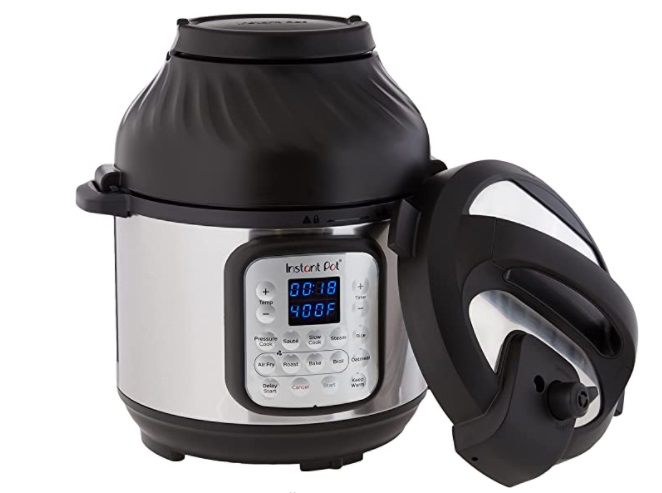 Para hacer la vida más práctica en la cocina, está una olla a presión y freidora eléctrica Instant Pot Duo Crisp 9 en 1 con tapa de freidora y anillo de sellado, acero inoxidable, cocción a presión, cocción lenta, freír al aire, asar, cocinar al vapor, saltear, hornear, asar y mantener caliente, que tiene un precio de descuento de $99.95 dólares. Su precio regular es $149.99 dólares.