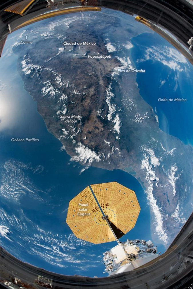 Desde el espacio es visible la Ciudad de México, capital del país, así como el famoso volcán Popocatépetl, Pico de Orizaba y volcán de Colima.
