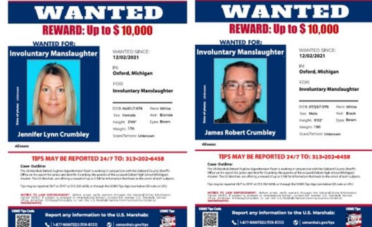 La madrugada de este sábado la Policía de Michigan informó que Jennifer y James Crumbley, padres del niño acusado de matar a cuatro estudiantes y herir a otras siete en Oxford High School el martes, fueron arrestados en Detroit.