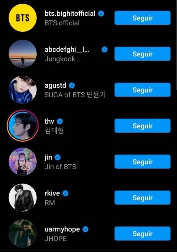 Por el momento, los integrantes de BTS siguen únicamente siete cuentas: la principal, dedicada a la banda, y las de sus compañeros.