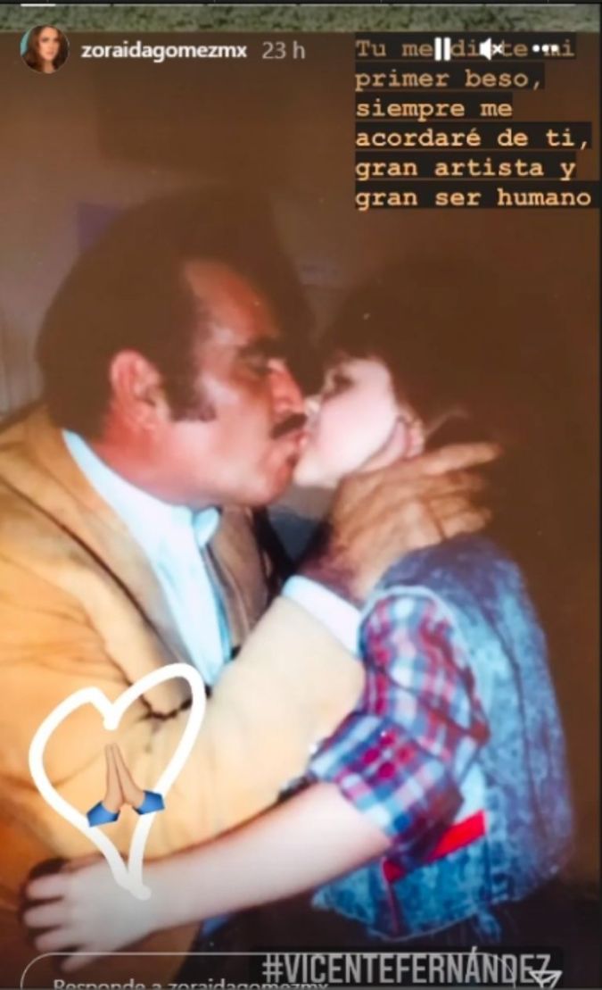 Zoraida Gómez desató críticas por su inapropiado tributo a Vicente Fernández luego de su muerte, pues reveló una imagen de hace muchos años cuando era una niña junto al 'Charro de Huentitán' donde indicaba que él le había dado su primer beso