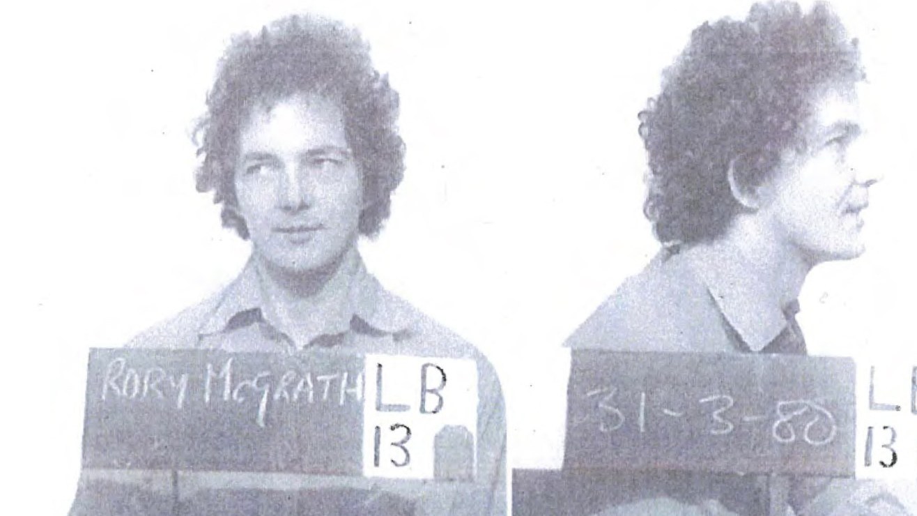 Rory McGrath fue detenido en 1980 por agredir a un policía durante una pelea. Crédito: Policía de West Yorkshire 1980 | Cortesía