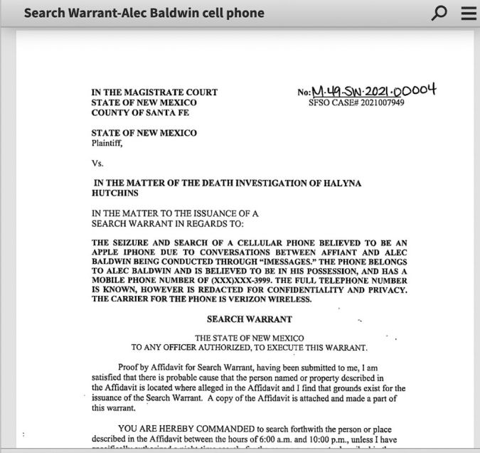 La policía de Santa Fe obtuvo este jueves, 16 de diciembre, una orden de registro que les autoriza a confiscar el teléfono celular de Alec Baldwin como parte de su investigación sobre el tiroteo mortal en el set de ‘Rust’.