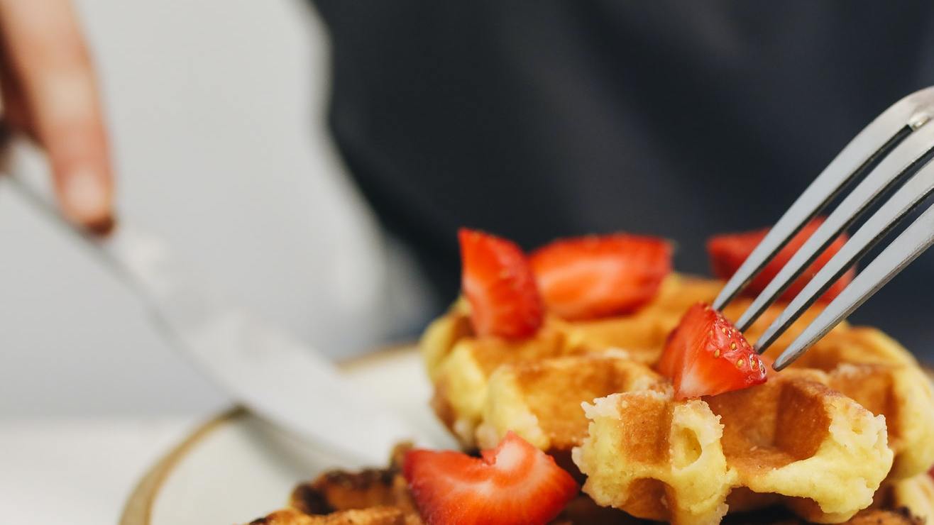 En el video compartido en TikTok se puede ver a un joven almorzando unos waffles que su chica le preparó cuando de repente, le comenta, sorprendido, que le parece un tanto extraño que estos estén muy duros y no los pueda cortar.