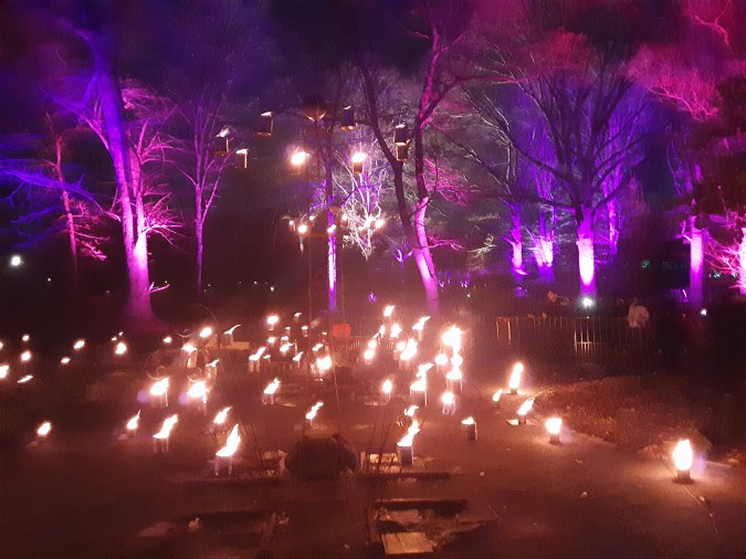 Por ser al aire libre, “Lightscape” no sólo ofrece bajo riesgo de contagio, sino además convierte a la naturaleza en parte del espectáculo, con sus sombras y colores incorporados a los juegos de luces, junto a poemas proyectados de Jacqueline Woodson.