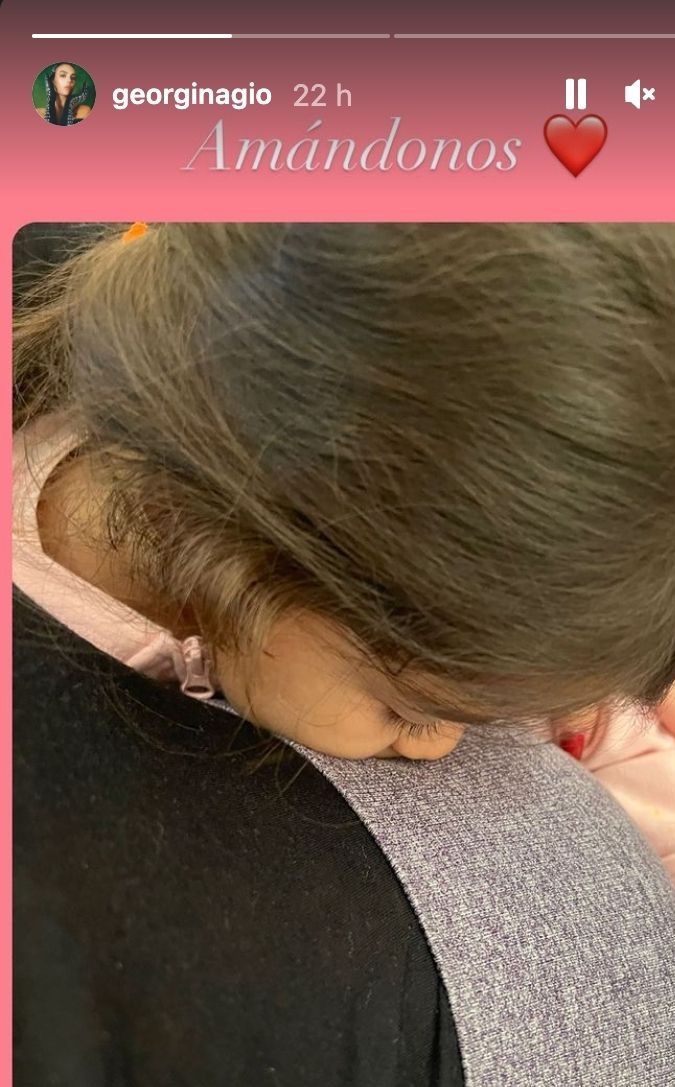 Allí, Georgina compartió una adorable imagen de su hija Eva besando con cariño la ya abultada pancita que luce la española, quien espera mellizos.