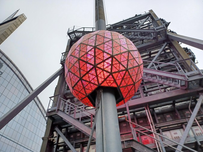 Los organizadores de la Alianza Times Square probaron todos los detalles del ascenso de la inmensa bola conocida por sus efectos de iluminación, capaz de mostrar 16 millones de colores vibrantes.