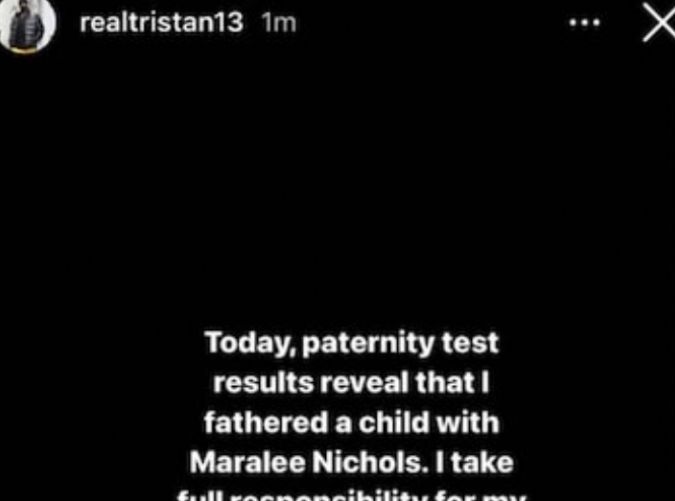 Este lunes, 3 de enero, Tristan Thompson confirmó en un comunicado publicado en su cuenta de Instagram que tuvo un bebé con Maralee Nichols después de someterse a una prueba de paternidad cuando el bebé nació, misma que dio positivo.