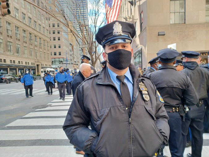 A las 11 de la mañana de este jueves una hilera casi interminable de oficiales del Departamento de Policía de la Ciudad de Nueva York (NYPD) custodiaba la entrada de la Catedral de San Patricio en Manhattan, esperando los restos mortales de uno de sus compañeros que fue asesinado a balazos, hace menos de una semana, en Harlem.