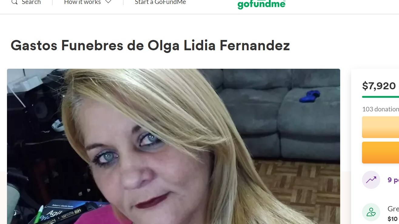 En GoFundMe se pidió apoyo para los gastos fúnebres de Olga Lidia Fernández. Crédito: Captura GoFundme | Cortesía