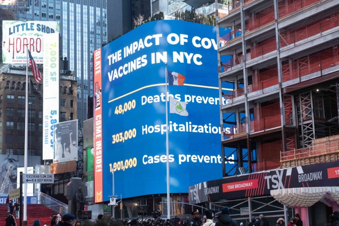 “Hace dos años, la ciudad de Nueva York fue el epicentro de la pandemia. Gracias a que los neoyorquinos se vacunaron y recibieron refuerzos, hemos logrado un progreso tremendo”, refirió el alcalde Eric Adams desde Times Square.