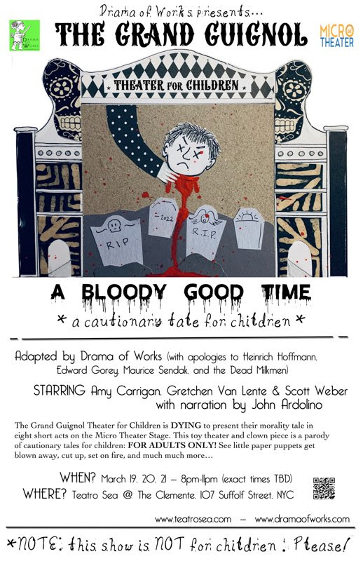 Presentada por Drama of Works, esta obra de teatro de juguete es una actuación de marionetas para adultos basada en Shockheaded Peter y la tradición de los cuentos con moraleja para niños. Vea pequeños títeres de papel volar, cortarse y prenderse fuego, y mucho, mucho más