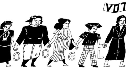 Además, intercaladas entre las letras que conforman la palabra Google aparecen los dibujos de 5 mujeres, todas ellas completamente diferentes, siguiendo a quien parece ser la líder del grupo, quien enarbola un banderín que lleva escrita la palabra “Vota”.
