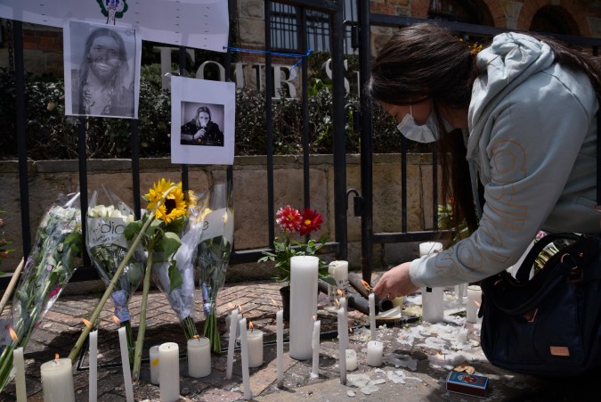 Los fanáticos en Colombia de la banda, quienes están conmocionados y dolidos por la muerte del baterista, se han acercado al hotel Casa Medina a ofrecer una sentida ofrenda.