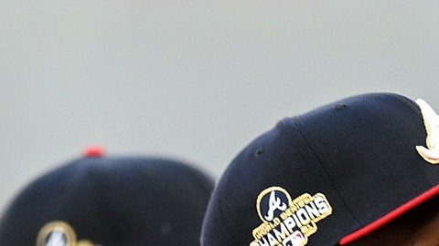 Ronald Acuña posa con su anillo de campeón de Serie Mundial entregado en la serie ante Cincinnati Reds el 9 de abril. Crédito: Adam Hagy | Getty Images
