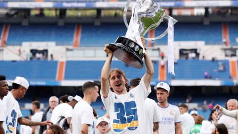Luka Modric viene de levantar La Liga 35 del Real Madrid. Crédito: Arroyo Moreno | Getty Images