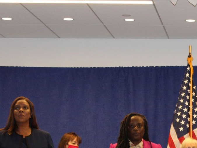 La Fiscal Letitia James en conferencia de prensa anunciando su respaldo a que NY ayude a mujeres de otros estados a tener acceso al aborto Crédito: Oficina de la Fiscal Letitia James | Cortesía