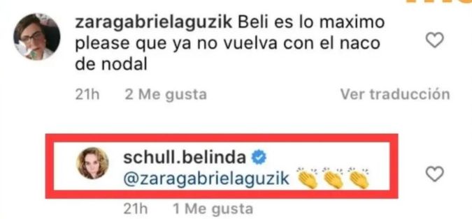 El usuario @zaragabrielaguzik escribió: “Belinda es lo máximo; ojalá no vuelva con el naco de Nodal“, a lo que la mamá de la artista respondió con unos emojis de aplauso para demostrar que estaba de acuerdo con la publicación.