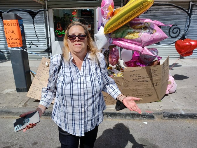 “Yo no estoy tranquila hasta que mis hijos no regresen a la casa. Aquí lo que queremos es mano dura. No es posible que agarren a alguien con un arma y al día siguiente esté suelto”, comentó Luzmila García, una abuela dominicana que se acercó con una flores a un altar improvisado por la comunidad, en el sitio en donde la pequeña Kyhara se desplomó, luego de ser baleada.