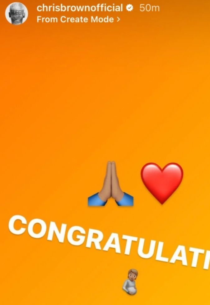 Una de las primeras celebridades en reaccionar al debut en la maternidad de la cantante ha sido el rapero Chris Brown, con quien ella mantuvo una relación sentimental repleta de altibajos entre 2007 y 2013.