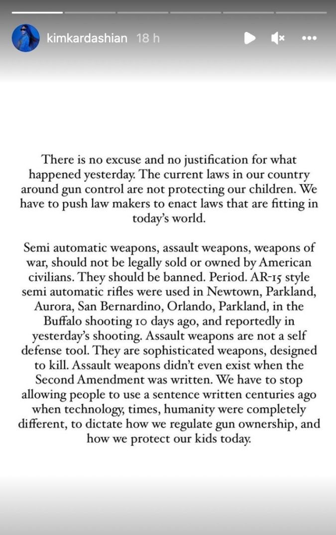 Kim Kardashian propone medidas concretas para regular el uso de armas en EE. UU. tras tiroteo en Uvalde
