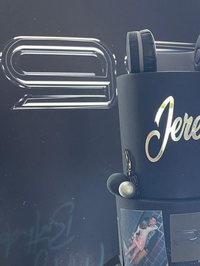 Jeremy, quien es productor musical, ya que sin duda lleva la música en las venas, tuvo un pastel alegórico de tres pisos, en donde tenía imágenes de alguno de los artistas con los que trabaja y momentos especiales de su vida.