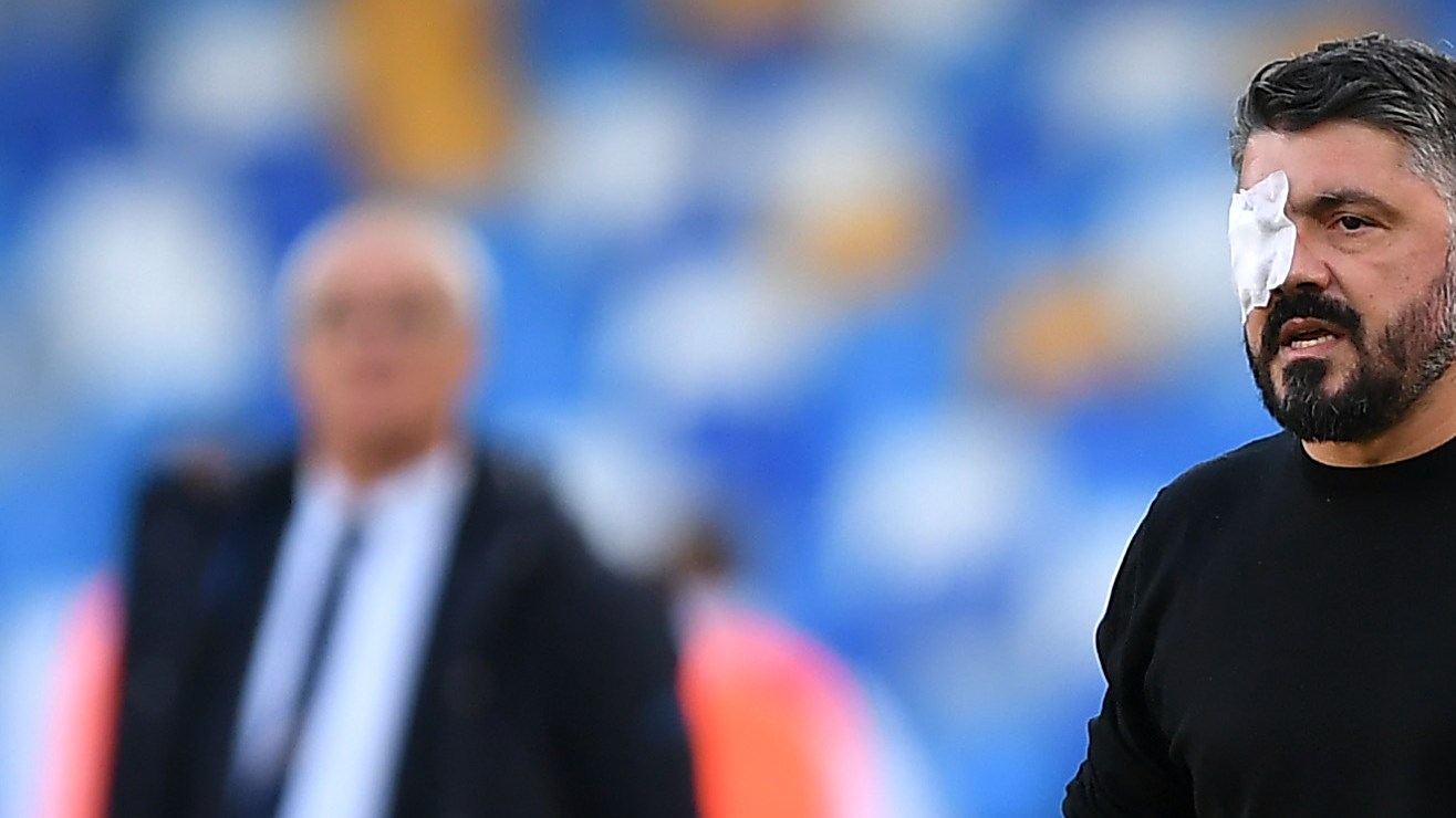 NAPLES, ITALY - DECEMBER 13: Gennaro Gattuso, Head Coach of S.S.C. Napoli looks on as he wears an eye patch during the Serie A match between SSC Napoli and UC Sampdoria at Stadio Diego Armando Maradona on December 13, 2020 in Naples, Italy. Sporting stadiums around Italy remain under strict restrictions due to the Coronavirus Pandemic as Government social distancing laws prohibit fans inside venues resulting in games being played behind closed doors. (Photo by Francesco Pecoraro/Getty Images) Crédito: Getty Images