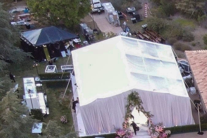 Desde antes de la boda, varios medios difundieron las fotos tomadas por paparazzis en la zona. Toda la instalación para la celebración se hizo en las áreas verdes de la propiedad.