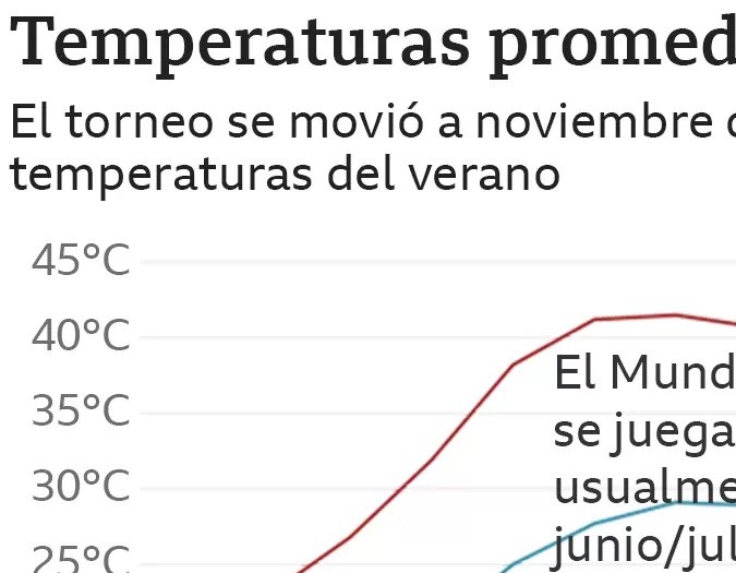 Las finales de la Copa del Mundo se llevarán a cabo entre el 21 de noviembre y el 18 de diciembre, una época en la que la temperatura en Qatar suele alcanzar los 25°C.