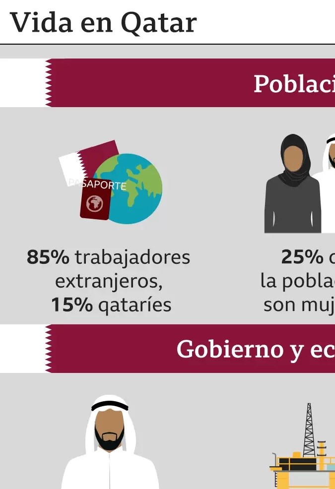 Qatar tiene una población de 2.9 millones de habitantes, de los cuales, solo 20% aproximadamente son ciudadanos del país. El resto son inmigrantes. El país árabe es uno de los países más ricos del mundo, debido a sus exportaciones de petróleo y gas.
