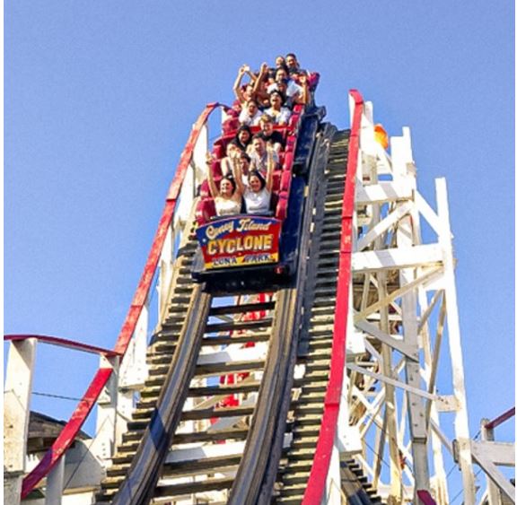 Abierto el 26 de junio de 1927, el Cyclone alcanza una velocidad máxima de 60 millas por hora, transporta 24 pasajeros y cuenta con una longitud total de vía de 2,640 pies, y es la segunda montaña rusa de madera más empinada del mundo, con una caída que mide 85 pies en un ángulo de descenso intransigente de casi 60 grados. Ubicada en la intersección de Surf Avenue y West 10th Street, Brooklyn. Información: www.LunaParkNYC.com.