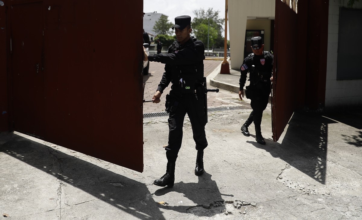 Policías abren la entrada a la sede de la Federación Salvadoreña de Fútbol, en San Salvador. Crédito: Rodrigo Sura | Getty Images