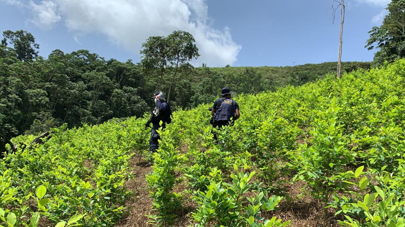 Durante un operativo especial, agentes de la Policía Nacional de Honduran, lograron la ubicación y el decomiso de al menos 45 manzanas de tierra que habían sido cultivadas con arbustos de hoja de coca para su posterior venta.