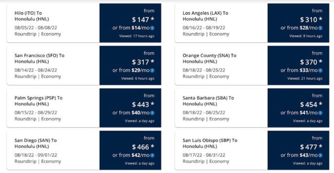 United Airlines está ofreciendo vuelos redondos de clase económica a Honolulu, Hawaii, volando desde 8 diferentes ciudades de los Estados Unidos por menos de $500 dólares.