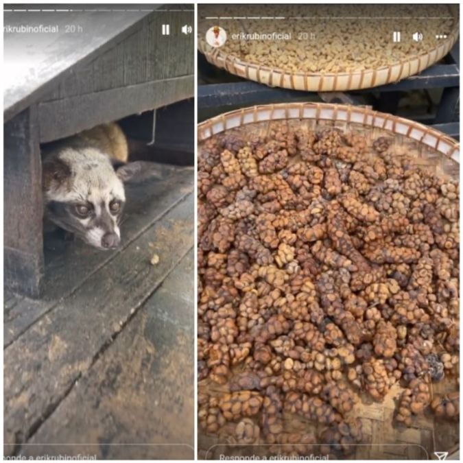 “Ahora nos dirigimos a probar luwak café, que literalmente es café con caca”, especificó Erik en historias de Instagram.