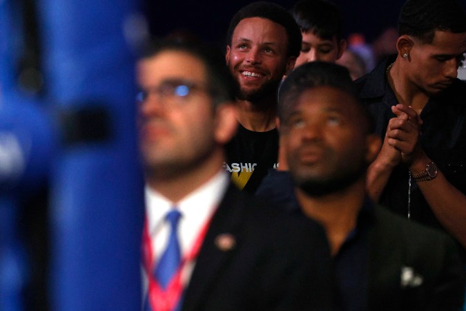 Por su parte, la estrella de los Golden State Warriors y múltiple campeón de la NBA, Stephen Curry, también dijo presente en el T-Mobile Arena de Las Vegas, y se le vio bastante sonriente momentos antes del inicio del combate.