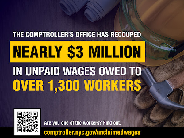 “Los trabajadores que estuvieron empleados en lugares de trabajo financiados por la Ciudad como escuelas públicas, estaciones de metro, calles y parques de la Ciudad y creen que nuestra oficina ha cobrado salarios prevalecientes impagos de sus empleadores, deben llamar a la línea directa del Contralor al (212) 669-4443“, instó la Oficina del contralor Brad Lander.