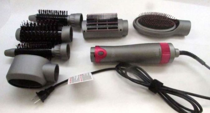 La combinación de secador de pelo y cepillos para el cabello se vendió en varios colores y estilos y/o con cabezales de cepillo intercambiables. Cuando se enciende, el aire entra por la base del mango, un elemento calefactor calienta el aire y el aire sale por las aberturas a lo largo del cepillo para el cabello.