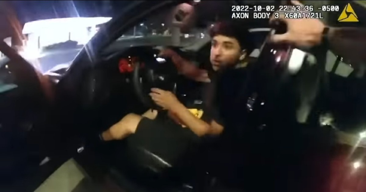 En imágenes de la cámara corporal del policía se ve cuando este abre la puerta del auto y le pide a Cantú que salga. El coche se mueve hacia atrás con la puerta abierta, y es en ese momento, que el uniformado dispara varias veces hacia el auto. El policía continúa disparando mientras el conductor abandona la escena.