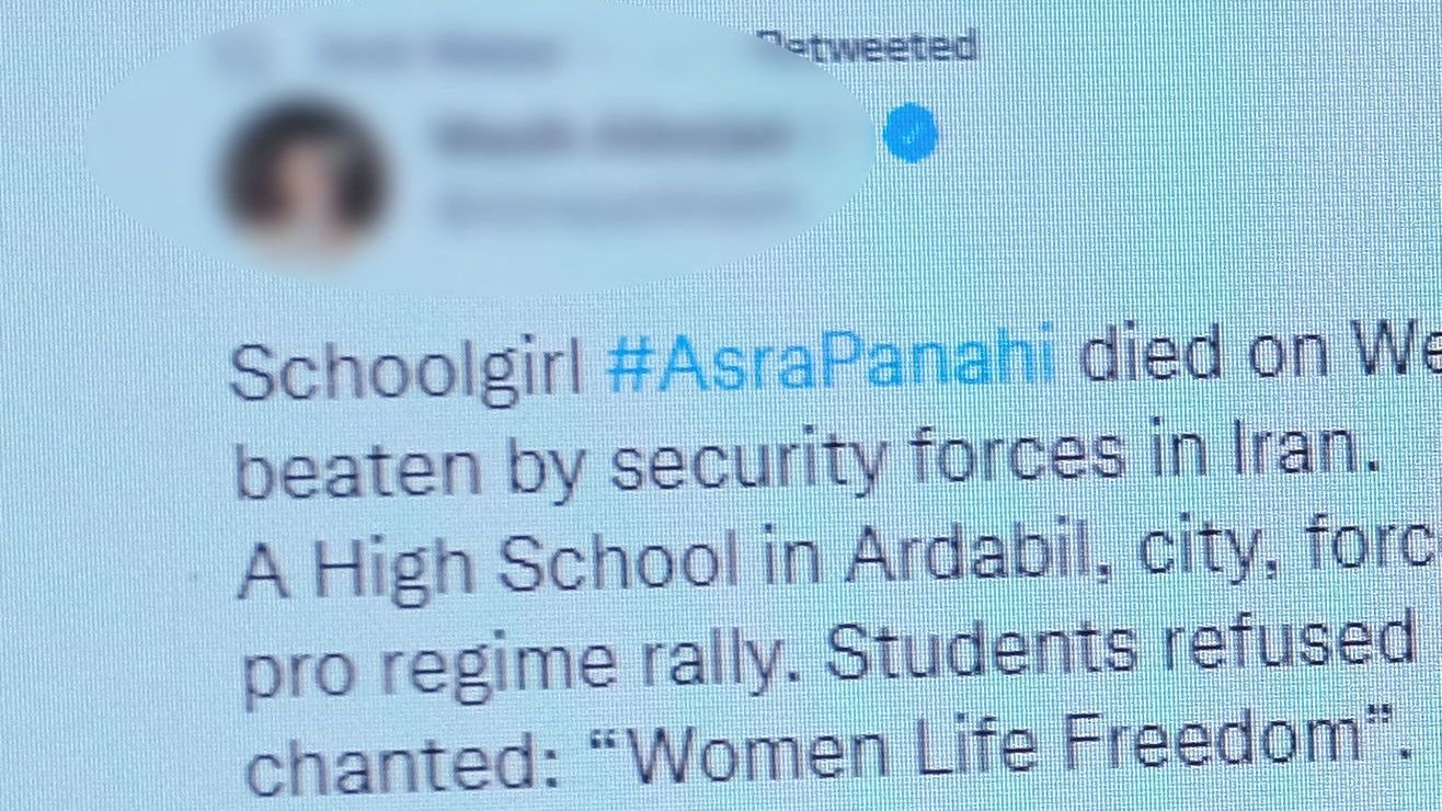 La muerte de Asra Panahi se produce en un momento crítico en el que Irán es testigo de las protestas antigubernamentales que comenzaron hace más de un mes.