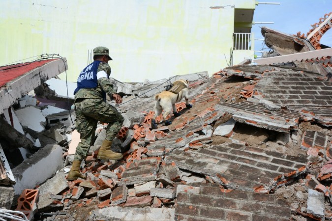 “Frida” buscando sobrevivientes entre los escombros. (Foto: SEMAR/Cortesía)