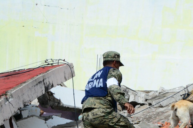 “Frida” buscando sobrevivientes entre los escombros. (Foto: SEMAR/Cortesía)