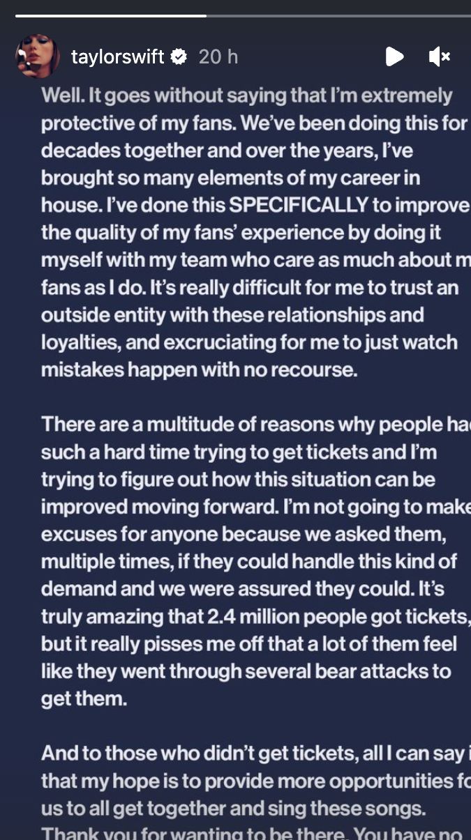 Ante el desconcierto de los fanáticos seguidores de la cantante estadounidense, Ticketmaster publicó ayer un comunicado en el que aseguró que la situación se desbordó a pesar de que para la venta de entradas de la gira de Swift se había habilitado una página especial en la que los fan debían registrarse para evitar las compras automáticas.