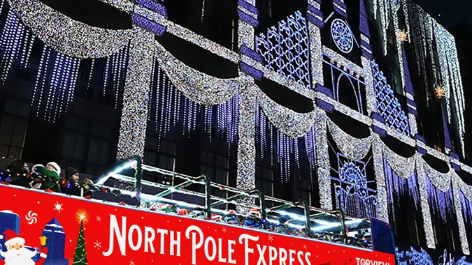 TopView comenzó su popular recorrido en el autobús Christmas Lights NYC. Esta aventura comienza con chocolate caliente y galletas mientras los pasajeros escuchan a los duendes contar una cautivadora historia navideña. Luego, el autobús recorre la ciudad pasando por más de diez deslumbrantes exhibiciones de luces navideñas, desde Saks Fifth Avenue Holiday Light Show y Rockefeller Christmas Tree y Radio City Music Hall hasta Cartier Holiday Lights y el Bryant Park. Los pasajeros tendrán la oportunidad de cantar villancicos, pasar tiempo de calidad con Santa, escribir su lista navideña y recibir una campana de trineo como regalo de él mientras le cuentan sus deseos de temporada. The North Pole Express arranca desde la Biblioteca Pública de Nueva York (476 Fifth Avenue, entre 5th y 6th Ave). Información: www.topviewnyc.com