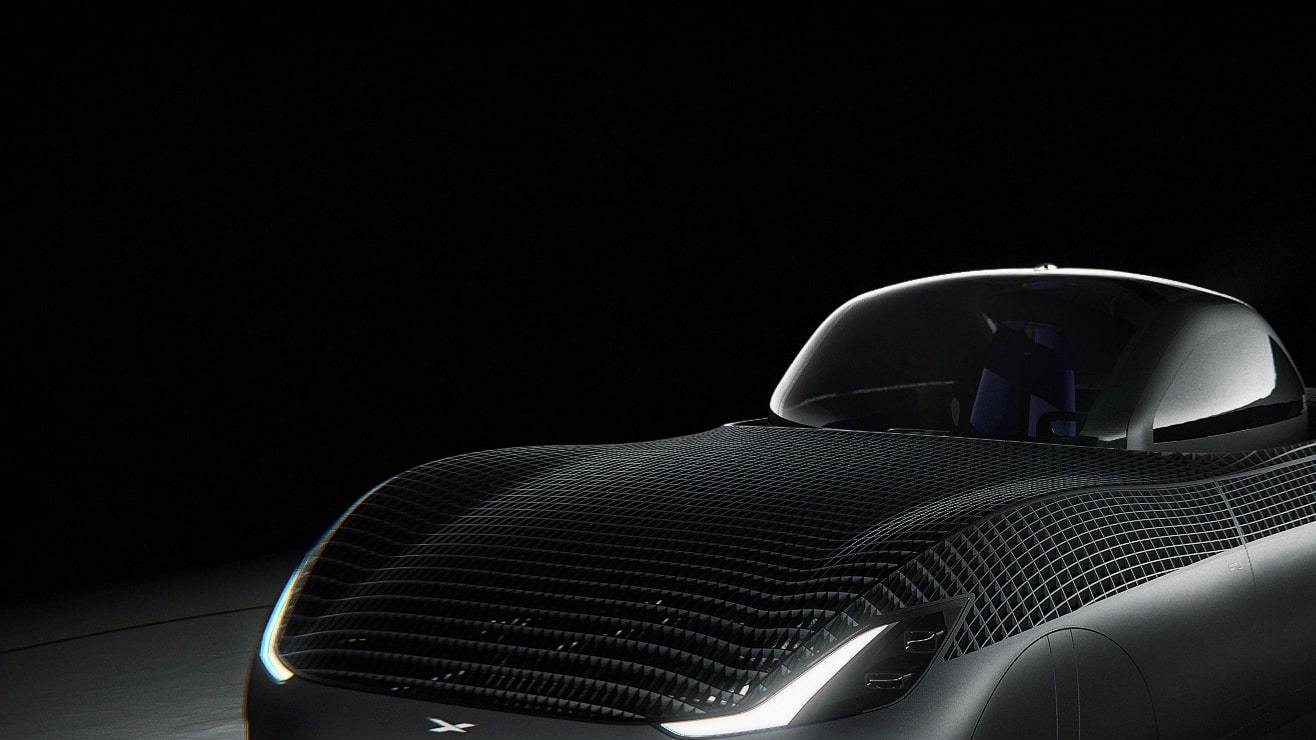 El diseño del automóvil incluye una carrocería de fibra de carbono con una parte superior abierta similar a una malla que alberga cuatro hélices en cada lado.