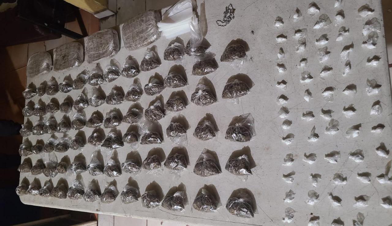 “En una inspección se les encontró en posesión de cuatro paquetes con hierba seca, supuesta marihuana, 71 bolsitas conteniendo la misma hierba, así como, 61 envoltorios con presunta cocaína”, señala el informe policial.
